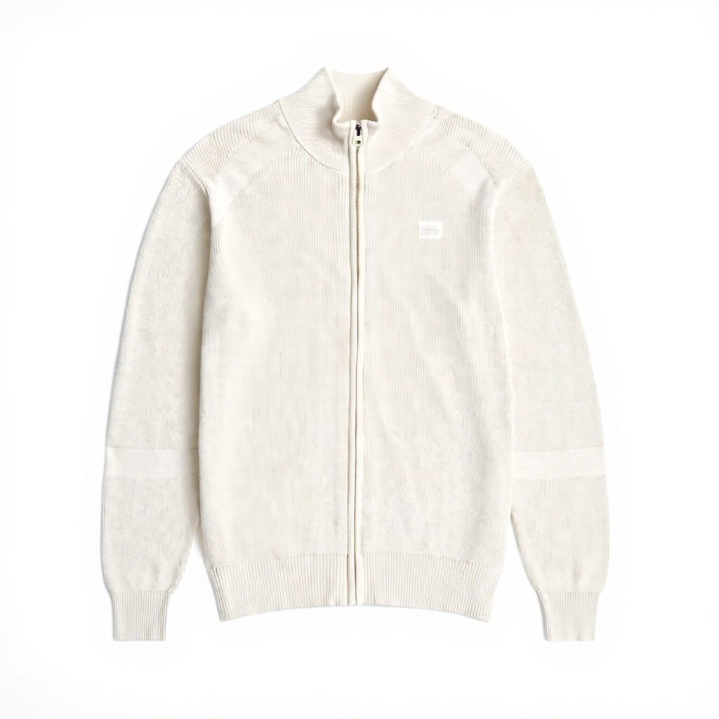 La maille innovante présente un motif discret qui capture la lumière différemment selon l’angle, créant une profondeur visuelle inattendue. Le col montant épouse naturellement la nuque sans frottement, tandis que la fermeture zippée complète permet une ventilation ajustable selon la température. Les finitions côtelées aux poignets et à la taille offrent un maintien doux sans compression. L’écusson G-Star Originals en feutre sur la poitrine ajoute une touche tactile, contrastant avec la douceur de la maille.